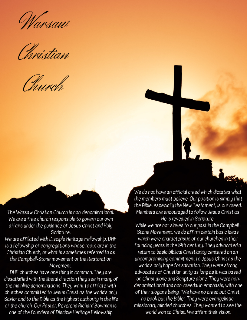 Hello everyone and welcome to the new Warsaw Christian Church website!